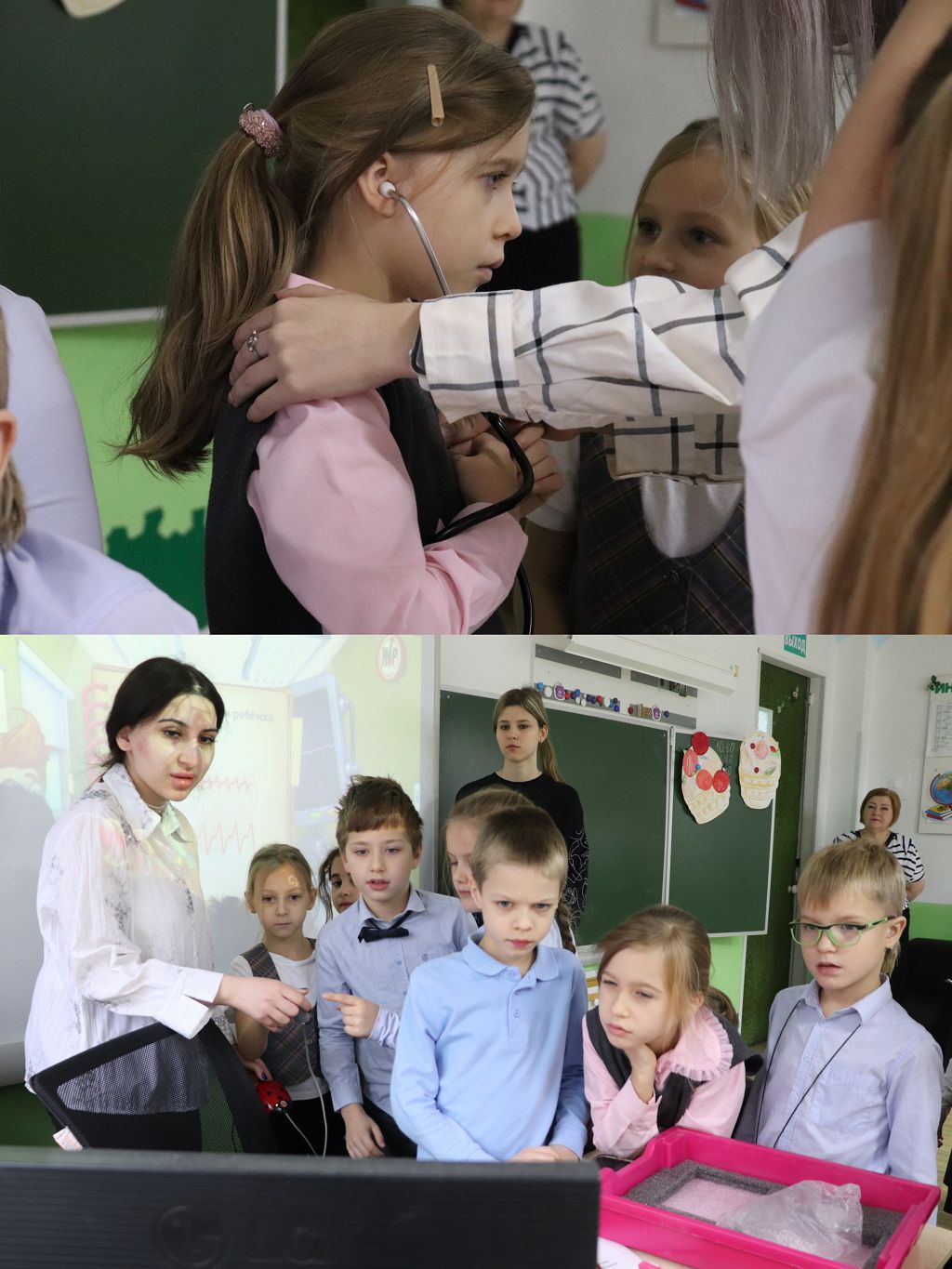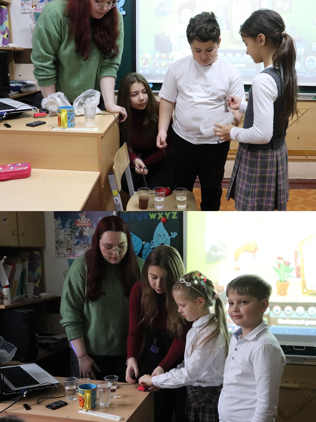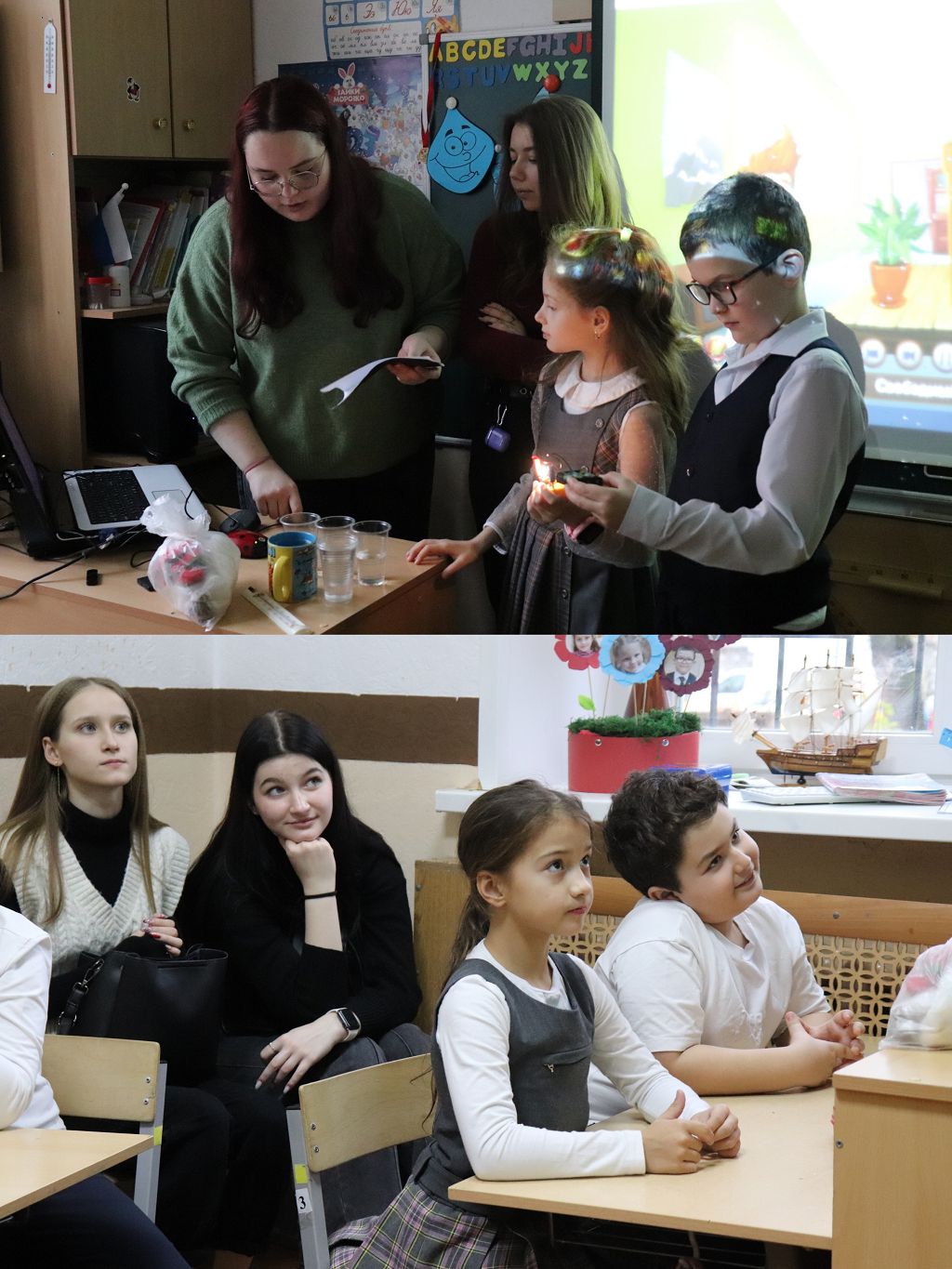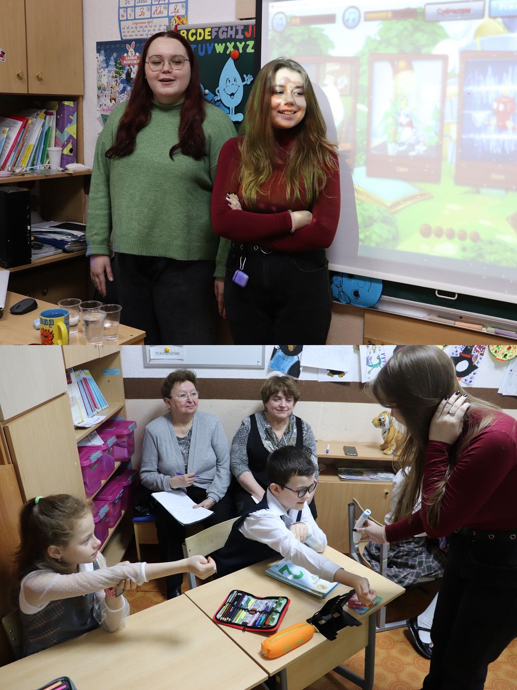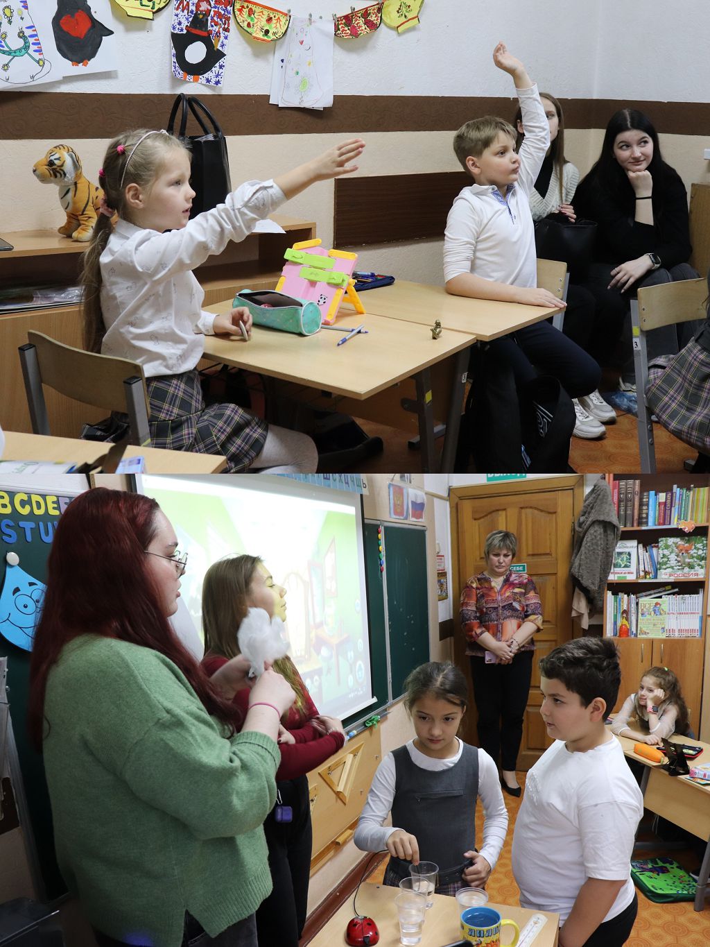 В видеоролике можно увидеть, с каким увлечением дети участвуют в процессе и как "горят глаза" у студентов, какой прекрасный контакт установлен между ними и учащимися.