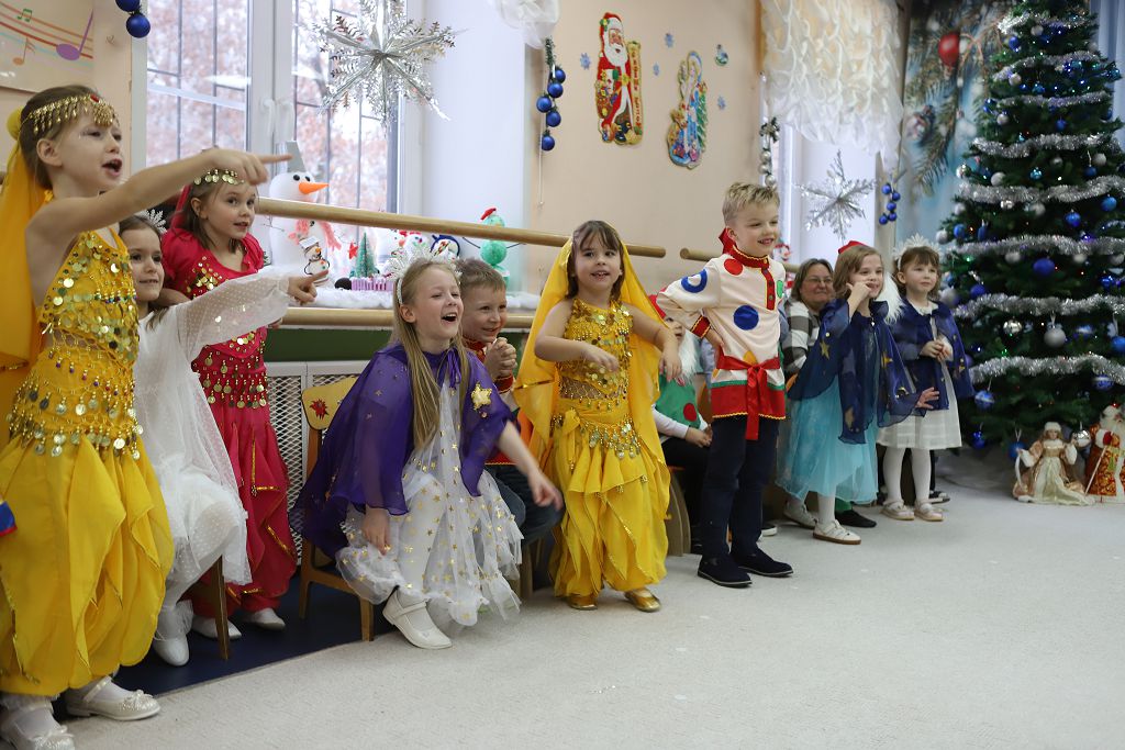 встречены восточные красавицы, гномики, мушкетёры, звёздочки, прозвучали новогодние песни, стихи, танцы. Дети средней группы, чтобы встретить Новый год,